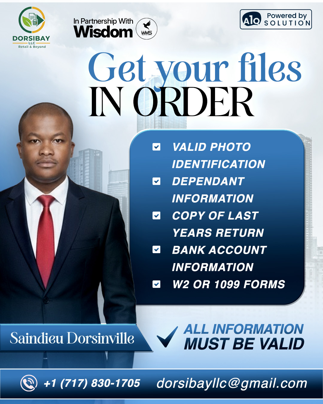 Thank you for choosing Dorsibay LLC for your tax filing needs! We’re excited to serve you. Please complete the intake form as thoroughly as possible. If you have any questions or need assistance, feel free to email us at [email protected] or call +1 717-8301-705